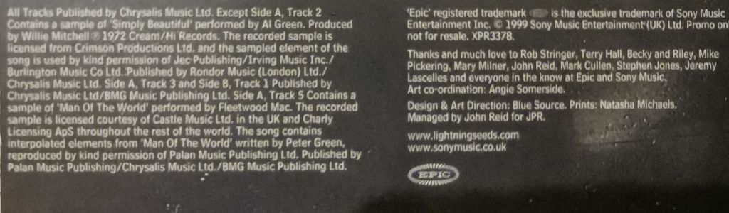 Well, yes I did, and no I haven’t got an advanced copy as I buy my Lightning Seeds stuff! What this is, is a very limited edition promotional pressing. These were limited to a 1000 copies and each one was numbered.