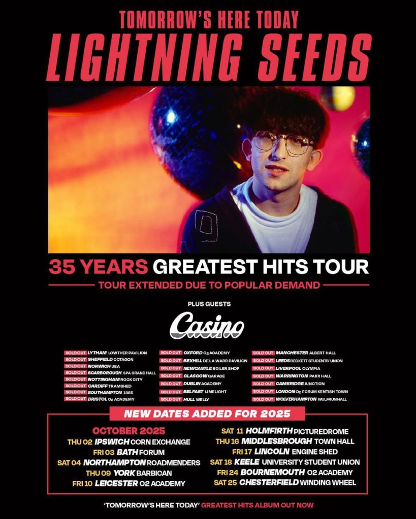 Following on from a rapturously received tour celebrating 35 years of the Lightning Seeds, the band return to somewhere near you in 2025! From Bath/Bath to Middlesbrough, there should be a date for you. Maybe see some of you there!
