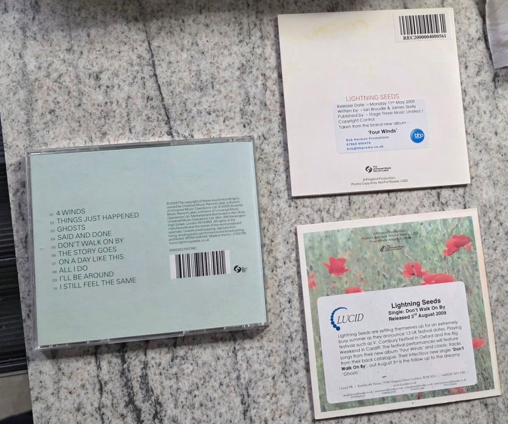 Here’s the album art. It’s the original 2009 CD release, and it’s long out of print. Don’t expect to see it back in print any time soon. Also seen here are the promo CDs for singles Ghosts and Don’t Walk On By.