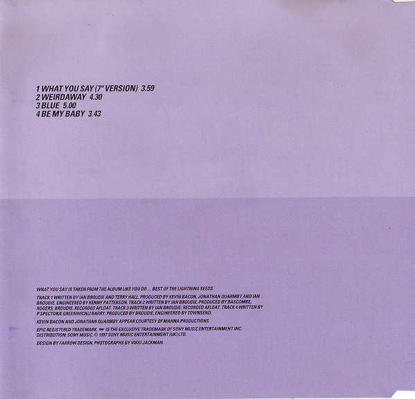 – What You Say produced by Ian Broudie, Jonathan Quarmby & Kevin Bacon.